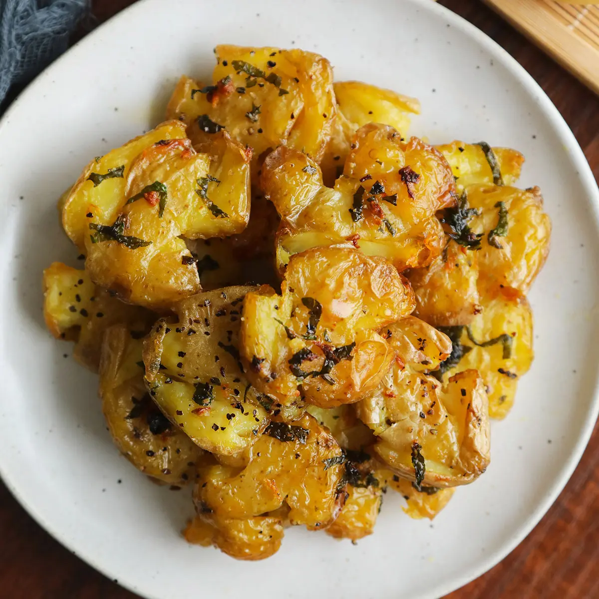 Easy Garlic-Herbs Butter Smashed Potatoes