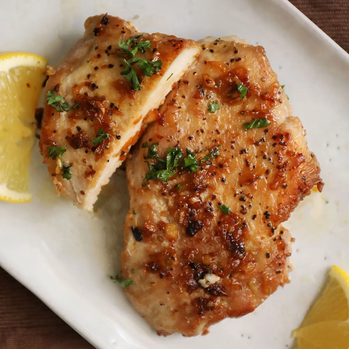 - Once done, remove the Lemon Butter Pork Chops from the skillet, garnish with chopped fresh parsley if desired, and serve immediately.