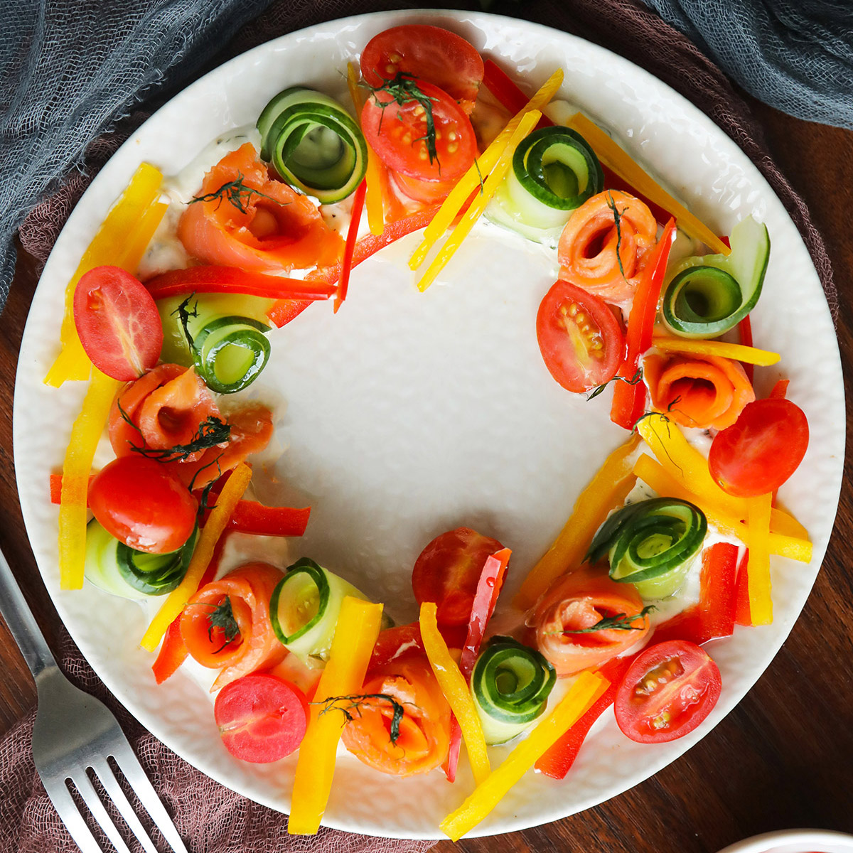 Serve your Smoked Salmon Wreath immediately or refrigerate until ready to serve.